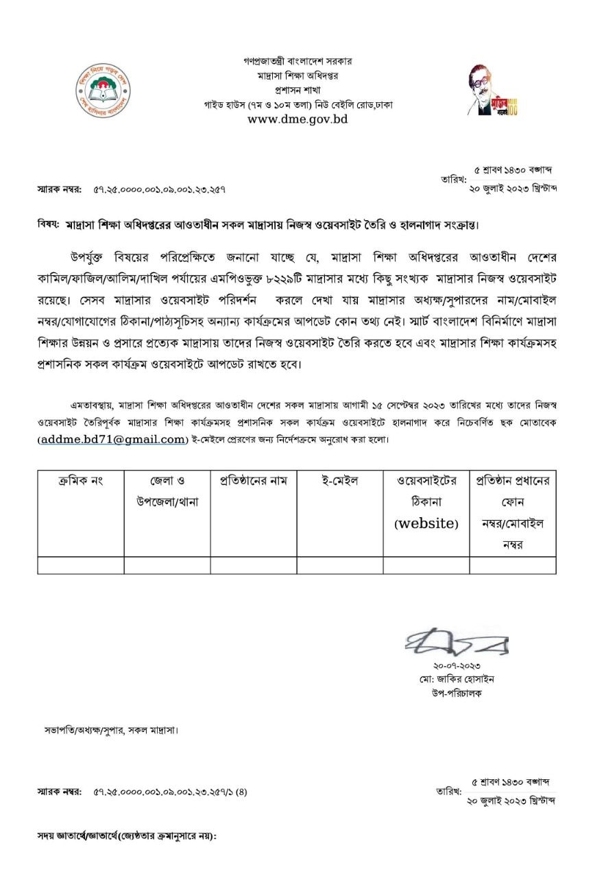 মাধ্যমিক ও উচ্চ শিক্ষা অধিদপ্তরের আওতাধীন সকল শিক্ষাপ্রতিষ্ঠান সমূহের ওয়েবসাইট তৈরি ও হালনাগাদ সংক্রান্ত জরুরী নোটিশ।